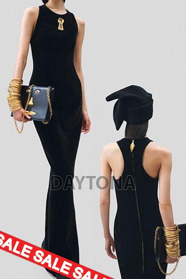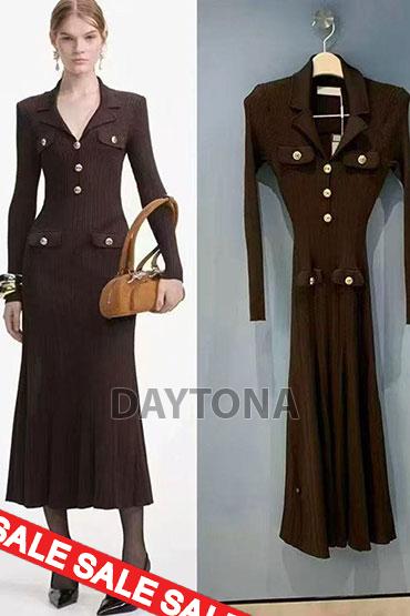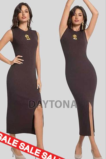 D82971 - ДЪЛГА РОКЛЯ ФИНО ПЛЕТИВО ДЕКОРАЦИЯ МЕТАЛНИ КАТАРАМИ