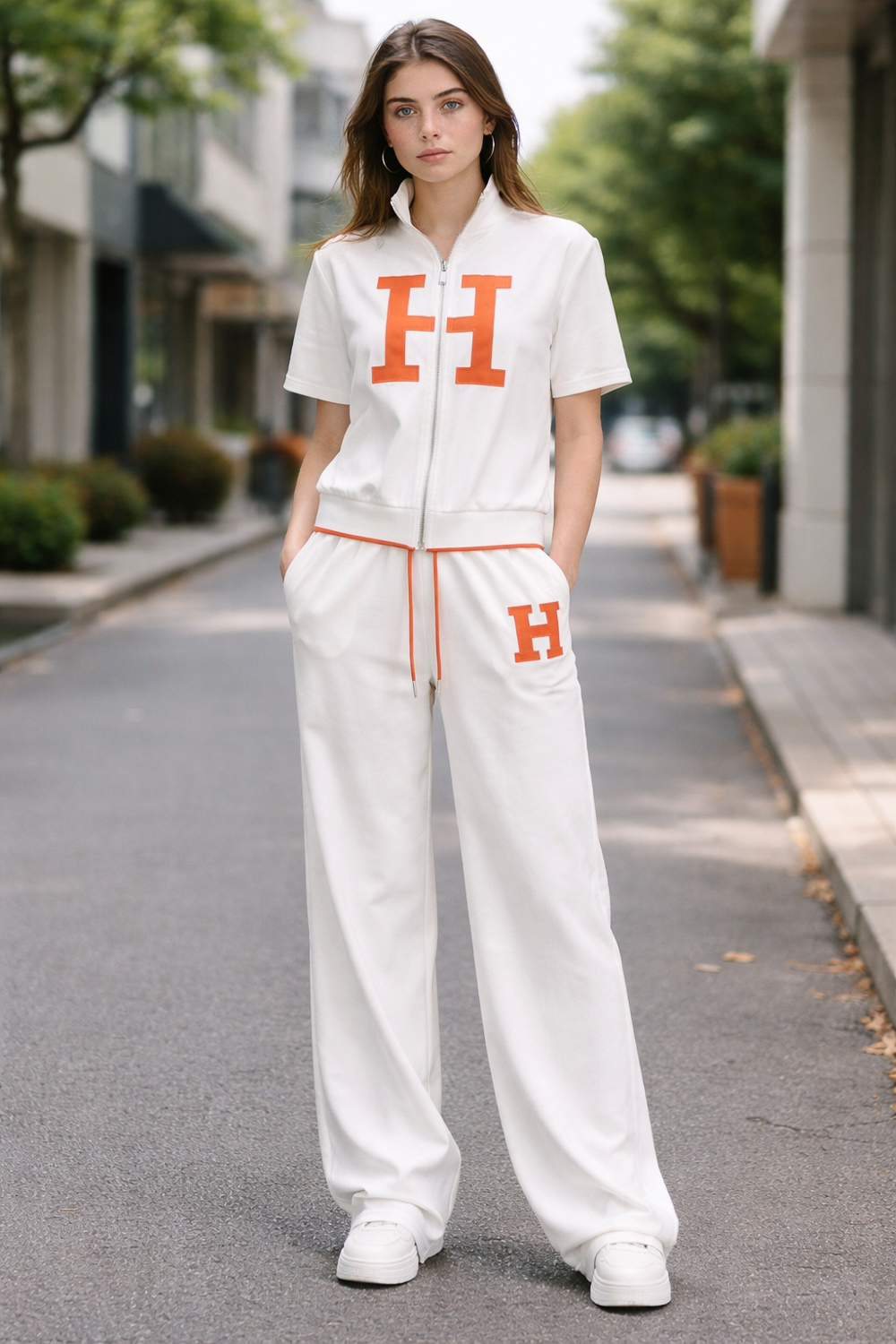 • Комплект от суитчер с къс ръкав и широк панталон