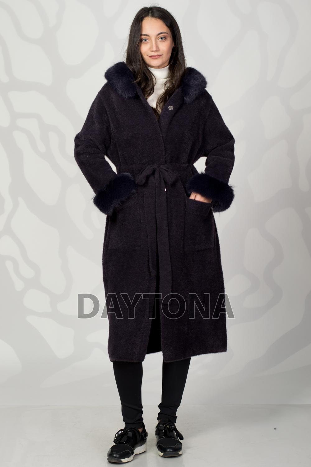 D84191 - W2652 --- ПАЛТО КАШМИР С КОЛАН КАЧУЛКА С ЕКО ЯКА И МАНШЕТИ